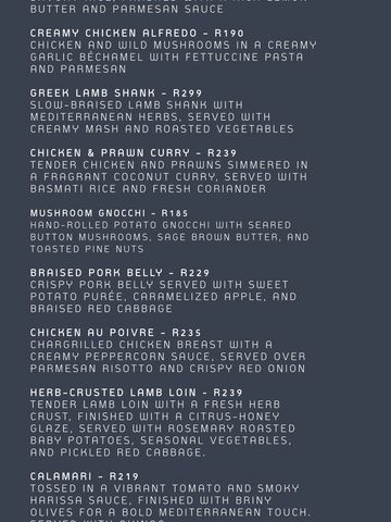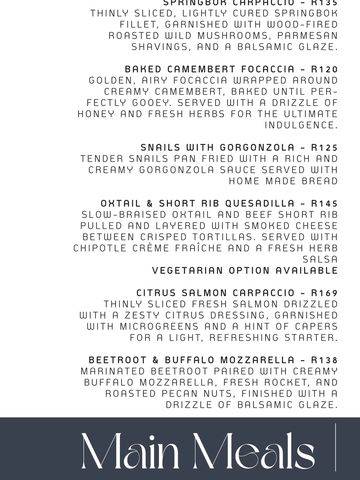 Welcome to Drama Restaurant, where culinary artistry meets sophisticated ambiance. Located in the heart of Pretoria, Drama offers a curated dining experience that blends bold flavors, locally-inspired dishes, and world-class service. Our wood-fired creations, gourmet delicacies, and elegant cocktails are crafted to delight every palate. Step into a space of refined elegance, where dark woods, chandeliers, and a touch of drama set the stage for unforgettable moments.